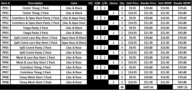 *PP01-PP04 are paired with Lilac Dream Pheromone.